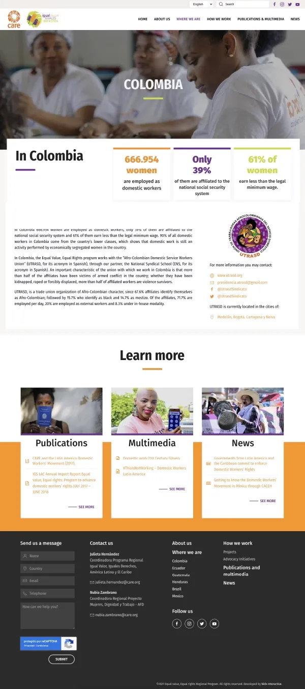 Care Ecuador needed an intuitive and accessible website to be able to promote the program’s activities to the organizations and unions of domestic workers in Latin America.